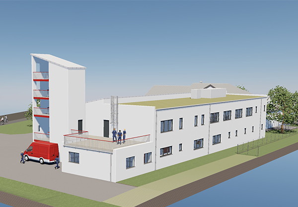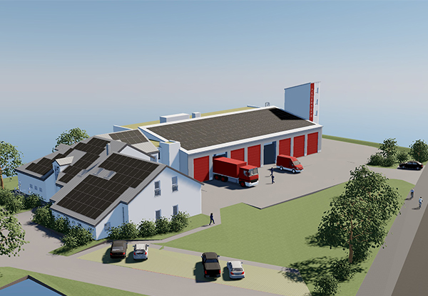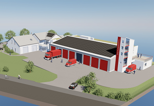 Teilabbruch und Errichtung einer Feuerwehr-Fahrzeughalle mit Übungsturm, Werkstätten, Lager und Sozialräumen